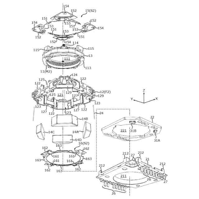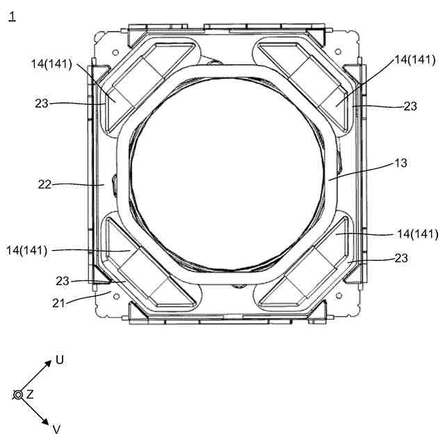 また、AF駆動部およびOIS駆動部のそれぞれには、コイルおよびマグネットが設けられている。マグネットは、AF駆動用のマグネットとOIS駆動用のマグネットとを兼用しており、AF用コイルおよびOIS用コイルの両方と対向する位置に配置される。具体的には、AF用コイルおよびOIS用コイルの一方が、S極およびN極が並ぶ向きに沿った方向(例えば、横方向)でマグネットと対向する。そして、AF用コイルおよびOIS用コイルの他方が横方向とは異なる方向(例えば、縦方向)でマグネットと対向する。