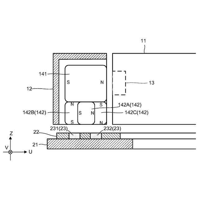 ところで、マグネットは、磁極(S極およびN極)が並ぶ方向(横方向)に磁束が流れるので、横方向で対向するコイルについては十分な量の磁束が流れる。そのため、当該コイルに対応する駆動部について、十分な推力により駆動させることが可能である。