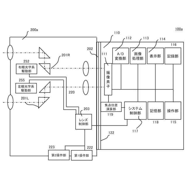 第1駆動部(252)とを有し、第1光学系および第2光学系はそれぞれ、被写体側から像側へ順に、第1光軸、第2光軸、および第3光軸を有し、