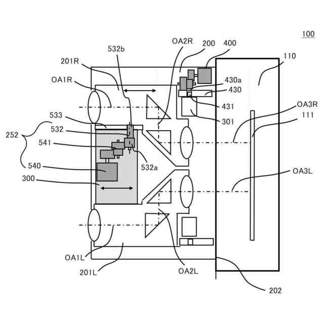 第1駆動部の少なくとも一部は、第1光学系および第2光学系のそれぞれの第1光軸を含む平面上において、第1光学系の第1光軸と第2光学系の第1光軸との間に配置されている。