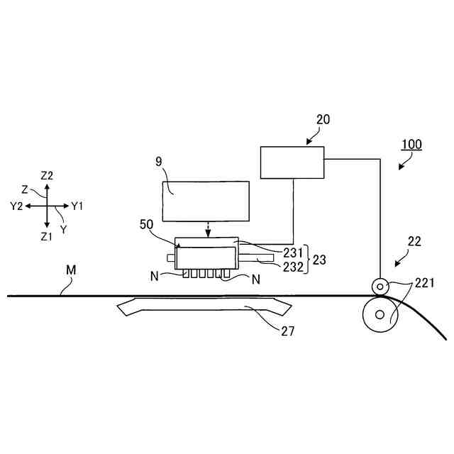 図1は、第1実施形態に係る液体吐出装置100の構成例を示す模式図である。図1に示す液体吐出装置100は、インク等の液体を液滴として媒体Mに対して吐出するインクジェット方式の印刷装置である。媒体Mは、例えば、印刷用紙、樹脂フィルムまたは布帛等の任意の材質の印刷対象である。