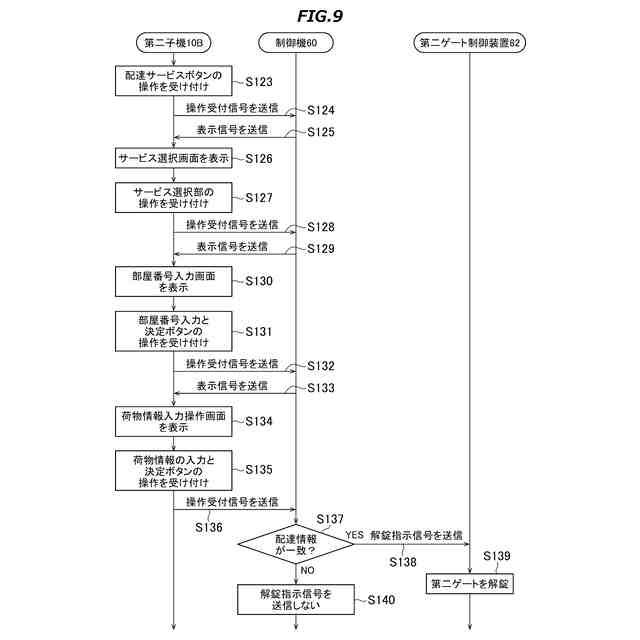 前記第二子機の前記呼出操作部に対して、少なくとも前記配達情報が入力されると、自動的に前記第二ゲート制御装置に解錠指示信号を送信する。