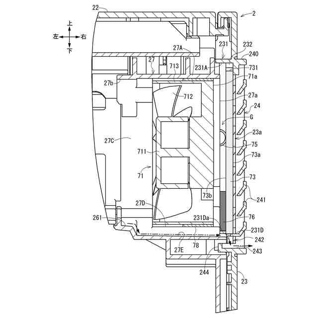 これにより、外部から筐体に力が作用したときに、ダクトによるフィルタに対する押圧を第1弾性体によって吸収して、フィルタに含まれる粉が飛散することを抑制できる。また、筐体に外部から力が作用したとき等に、フィルタ移動することを抑制できる。