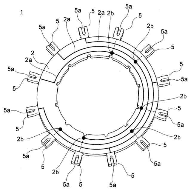 各前記端子(5)には、対応するコイル(110)に接続されているコイル配線(111)を挟み込んで電気的に接続させることができる接続部(5a)が形成されている、