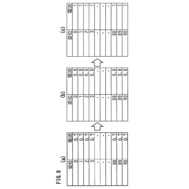 図8は、図6に示される基準触覚データの補正に必要な重み係数データを示すテーブルである。