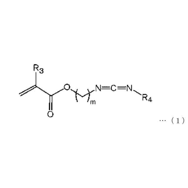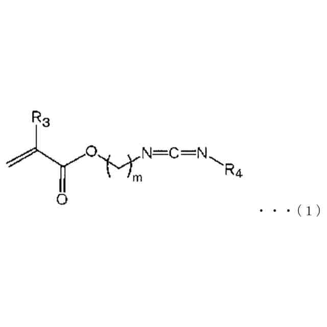 (i)ポリオレフィンから選ばれる少なくとも1種のベースポリマーの、下記式(1)で表される化合物からなる群より選ばれる少なくとも1種のカルボジイミドモノマーによるグラフト変性体を含む;