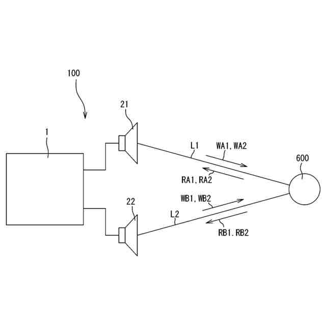 図1は、本発明の一実施形態にかかる音波処理装置1を用いたソナー装置100の構成を示す図である。図1に示すように、ソナー装置100は、外部に向かって超音波域(人間の可聴域を超えた周波数帯域を指し、一般には20kHz以上)の搬送波を送波し、検知対象物600で反射された反射波を検知する。そして、ソナー装置100では、搬送波の送波から反射波の受波までの時間に基づいて、検知対象物600までの距離を測定する。すなわち、ソナー装置100は、いわゆるTOF(Time of Flight)方式により距離測定を行う。ソナー装置100は、音波処理装置1と、第1音波送受波素子21と、第2音波送受波素子22とを備える。