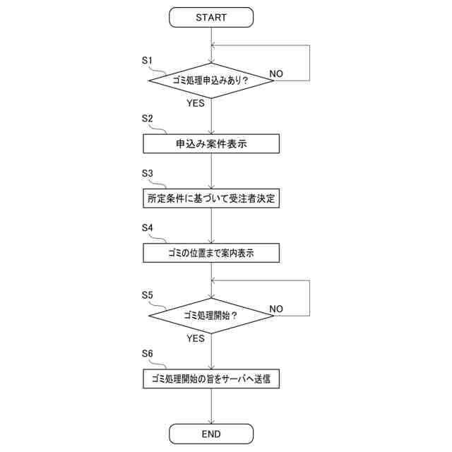 サーバがゴミ排出事業者端末からゴミ処理の申込みを受けるゴミ処理受注ステップと、