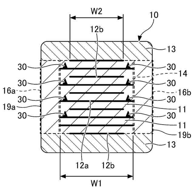 車載用コンピュータなどにおいて、大型で大容量かつ高信頼の積層セラミックコンデンサが求められている。特許文献1ではセラミックシートを介して対向して配置される内部電極の面積を各内部電極において変化させることにより、内部電極に対する電圧印加時にマージン部分に生じる引っ張り応力を分散させてクラックの発生を抑制する積層型セラミックコンデンサが記載されている。