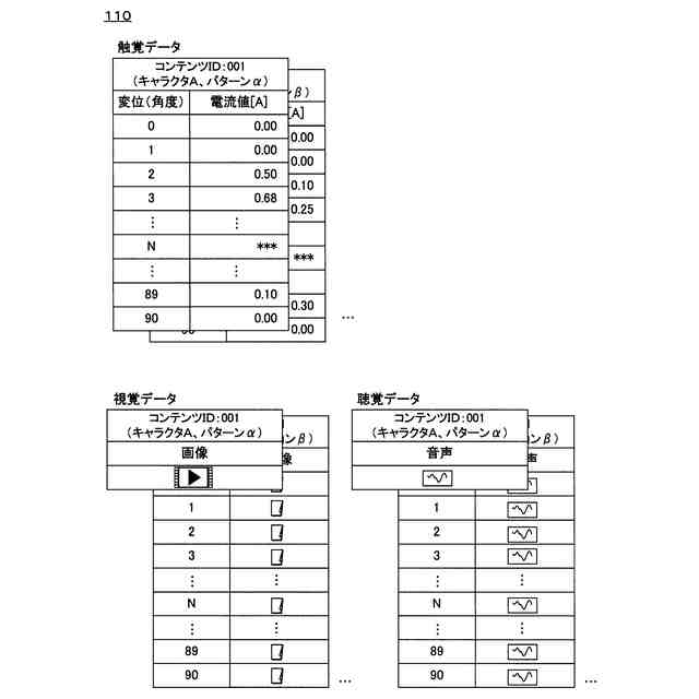 少なくともモーション変化の一部において、大きさが周期的に変動する触覚を提示するためのデータを含み、