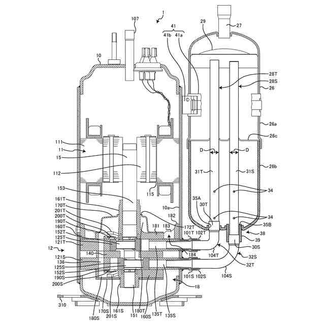 図1は、実施例1の圧縮機を示す縦断面図である。