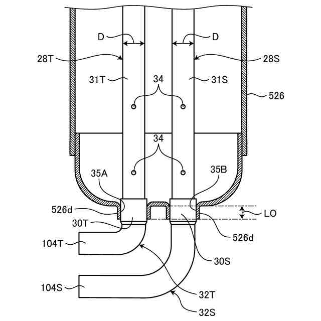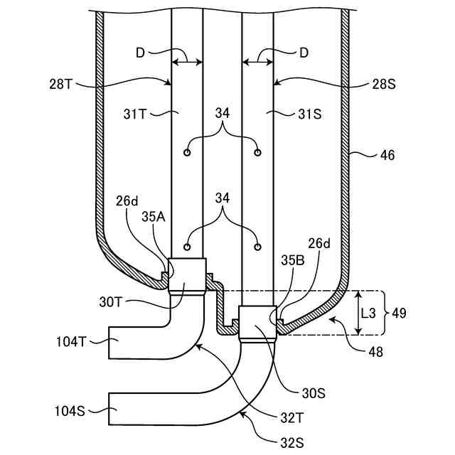 前記第2アキュムレータ接続管の前記調整部の長さは、前記第1アキュムレータ接続管の他の前記調整部よりも長い、