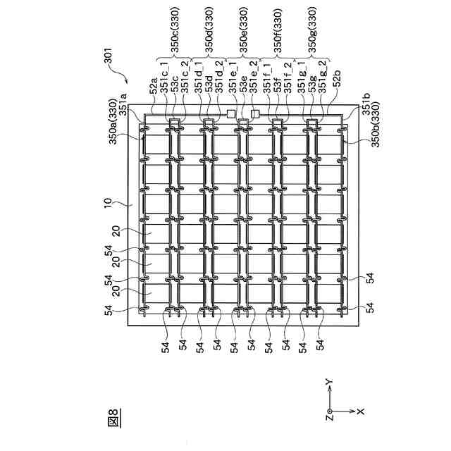 前記積層体は、複数の前記積層体からなり、複数の前記積層体は、前記積層方向に垂直な第1方向に配列され、前記導電パターンは、前記第1方向において、複数の前記積層体の間を橋渡ししてもよい。