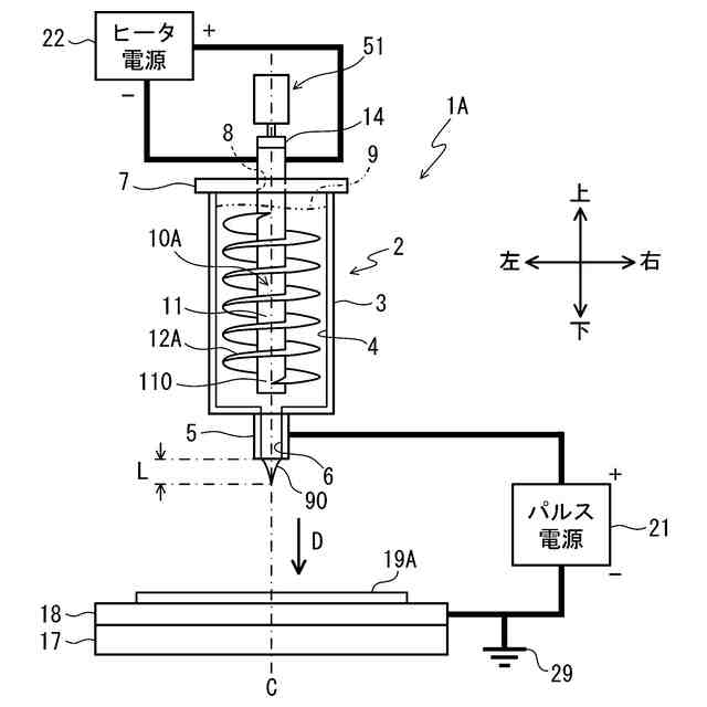 前記ノズルと前記対向電極とは、前記吐出方向に対向し、