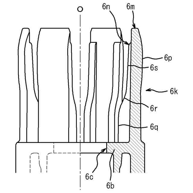図1に示したノズル部材の断面図(図4Bに示したD-Dに沿う断面図)である。