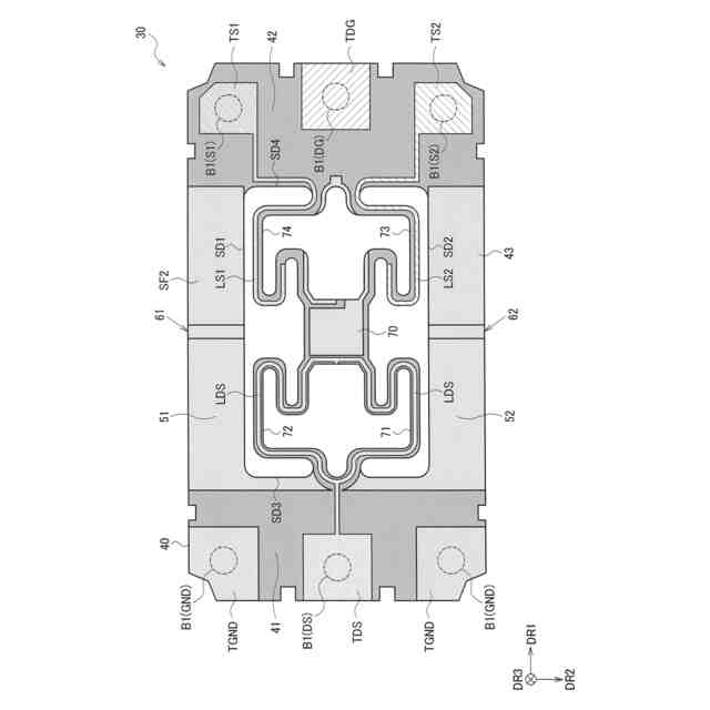 図1は本実施形態の振動デバイス1の構成例を示す断面図である。図1に示すように本実施形態の振動デバイス1は、振動素子10と、振動素子10を支持する支持基板30と、と、支持基板30が取り付けられるベース2を含む。また振動デバイス1は、リッド3とベース2とにより構成されるパッケージ4や、回路装置20を更に含むことができる。なお振動デバイス1は図1の構成に限定されず、これらの一部の構成要素を省略したり、他の構成要素を追加するなどの種々の変形実施が可能である。例えば回路装置20やリッド3などを設けない変形実施も可能である。また本実施形態では図1に示すように互いに直交する方向を方向DR1及び方向DR2とし、方向DR1及び方向DR2に直交する方向を方向DR3としている。方向DR1、DR2、DR3は、各々、第1方向、第2方向、第3方向である。またDR1、DR2、DR3の各方向の矢印先端側をプラス側ともいい、反対側をマイナス側とも言う。図1は振動デバイス1を方向DR2での側面視で見た側面図である。