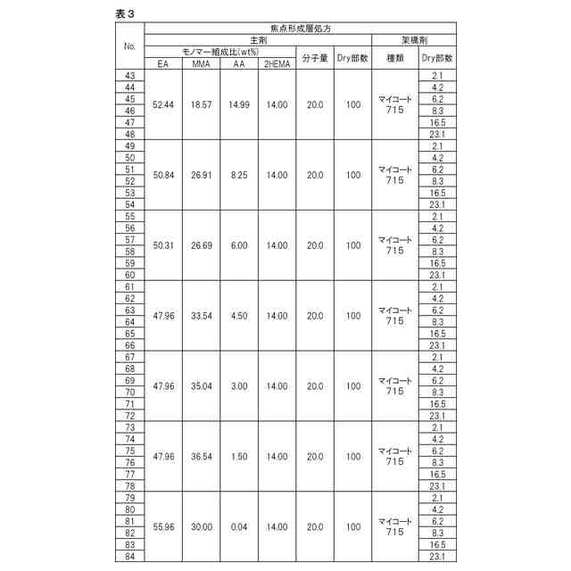前記焦点形成層は、アクリル酸及びメタクリル酸2-ヒドロキシエチルを含む主剤であるアクリル樹脂と、メラミン系の架橋剤と、を含み、