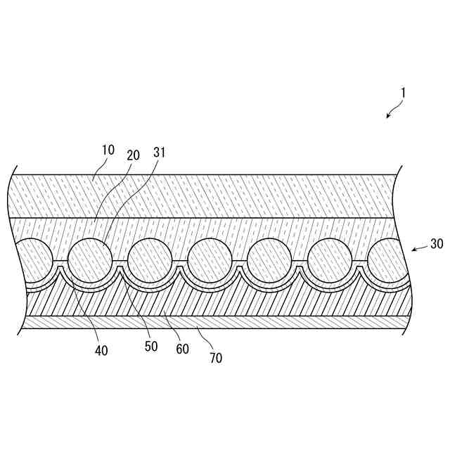 前記微小球と前記鏡面反射層との間を埋める光透過性の焦点形成層と、