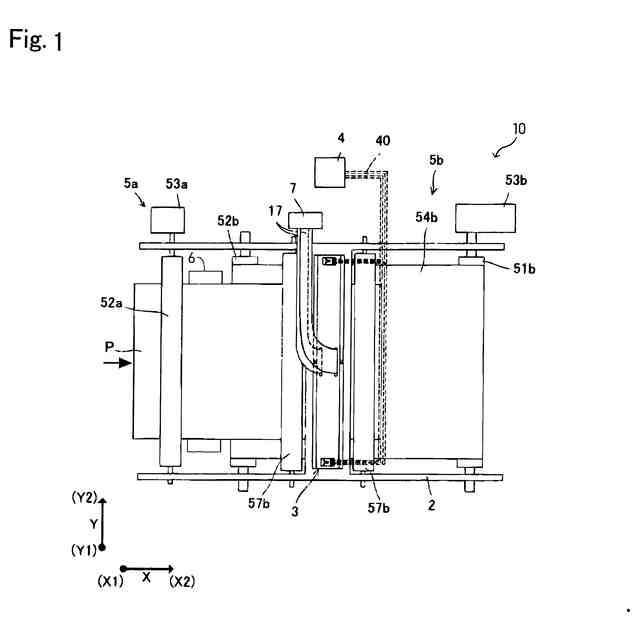 以下の説明において媒体Pが搬送される搬送方向を方向Xと称し、媒体Pが搬送される上流をX1側、下流をX2側として説明する。また、媒体Pにインクが着弾する着弾面の面内方向において、方向Xに直交する方向を方向Yと称し、方向Yにおける液体吐出装置10の一端をY1側、他端をY2側として説明する。さらに、方向X、及び方向Yの双方に直交する方向であって、プリントヘッド3から媒体Pに吐出されるインクが吐出される方向を方向Zと称し、プリントヘッド3から吐出されるインクは、方向ZのZ2側からZ1側に向かって吐出されるとして説明する。本実施形態において方向X、方向Y、及び方向Zは、互いに直交する軸として説明を行なうが、液体吐出装置10が備える構成が互いに直交して配置されていることに限定されるものではない。これらの方向X,Y,Zは、他の図にも適宜示した。
