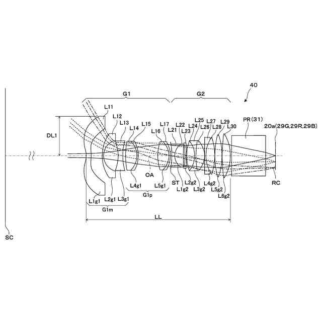 ここで、fg1pは第1サブレンズ群G1mの合成焦点距離、fg1mは第2サブレンズ群G1pの合成焦点距離、ωは投写レンズの最大半画角、IHはイメージサークル、DL1は最もスクリーン側にあるレンズの有効半径、LLはレンズ全長、Fは全レンズの合成焦点距離、BFは空気換算長のバックフォーカス距離である。