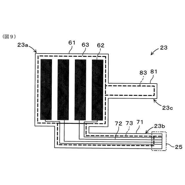 前記第1絶縁体シートの内面に接着され、前記絶縁体シート本体に非接着で配置される前記第1検出電極と、