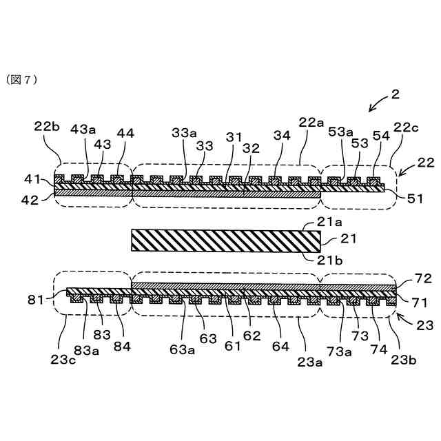 前記第1絶縁体シートの側縁から、前記第1絶縁体シートの面方向に延長され、前記第2主延長絶縁体シートに非接着に配置され、前記第2主延長絶縁体シートに対向して配置される第1副延長絶縁体シートと、