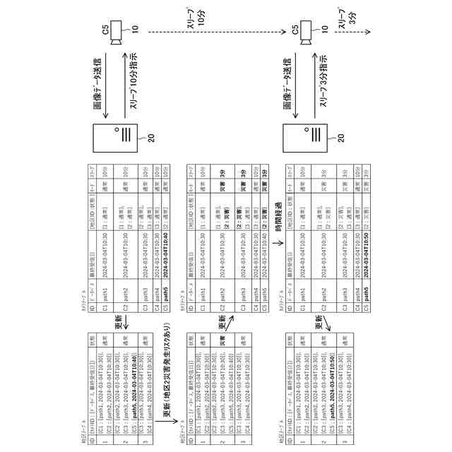 河川や道路などの給電が困難な現場に設置される監視カメラや水位計などの監視機器は内蔵バッテリで駆動される。このようなバッテリ駆動の機器は電力消費量を抑えるために間欠動作することが一般的である。例えば、監視カメラについて、気象情報を取得し、主電源バッテリの電力残量を当該気象情報に応じて算出し、当該算出した電力残量に基づいて撮影モードを切り替えて撮像間隔や画像送信間隔を変更する技術が知られている(例えば、特許文献1を参照)。