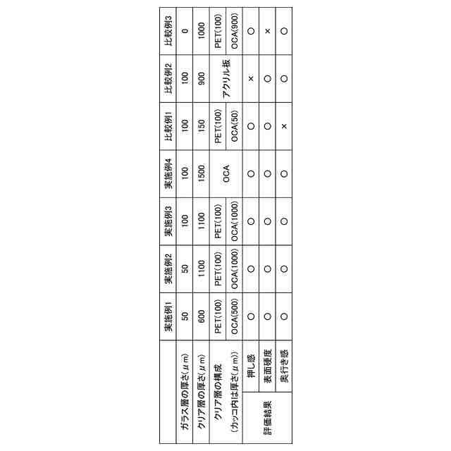 ガラス層と、ガラス層の下面側に配置されたスイッチと、を有し、ガラス層の厚さは20μm以上150μm以下であり、スイッチは上下に可動する接点を含む複数の接点を備え、ガラス層が押されるとガラス層が弾性変形して複数の接点の導通と非導通とが切り替わるスイッチ装置が知られている。このようなスイッチ装置では、ガラス層を弾性変形されるために、厚さを100μm程度に薄くする必要がある。その結果、ガラス層の存在感が低下し、奥行き感に乏しくなる。