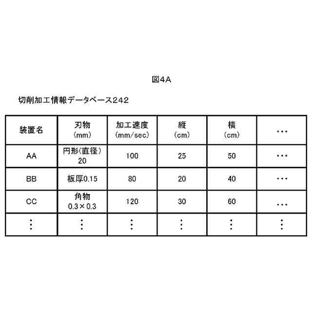 実施の形態に係る切削加工情報データベースのテーブルを示す図