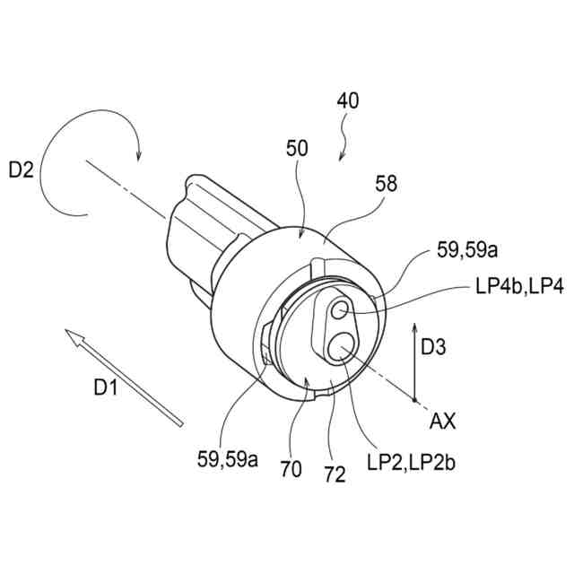 <13> 上記第1部品及び上記第2部品の上記他方は、複数の誘導凹部を含み、上記複数の誘導凹部は、上記軸方向と平行な軸線を中心として回転対称な構成を有する、<12>記載のコネクタ。