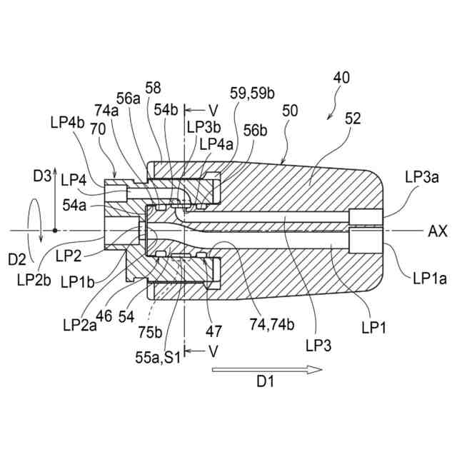 <9> 上記凸部上に位置し、上記第1部品及び上記第2部品の間をシールする環状の第3シール部材を更に備え、上記第3シール部材は、上記第2シール部材よりも上記軸方向における第1側に位置し、上記第1部品は、上記軸方向における上記第2シール部材及び上記第3シール部材の間となる位置に開口する第5液路を更に含み、上記第2部品は、上記軸方向における上記第2シール部材及び上記第3シール部材の間となる位置に開口する第6液路を更に含む、<1>~<8>のいずれか記載のコネクタ。
