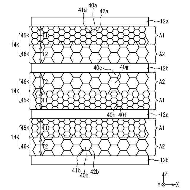 前記第1積層シートと前記第2積層シートとを第1方向に交互に積層することで素体を形成する工程と、