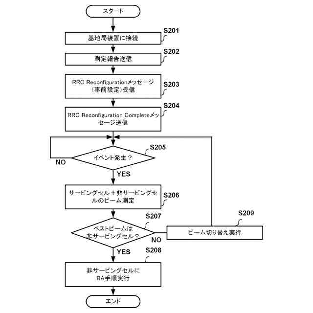 これに対して、非特許文献1に記載の手法では、ハンドオーバ元の基地局装置が、端末装置に対して、ハンドオーバが実際に行われる前に、ハンドオーバ先の他の基地局装置との接続のための無線リソース制御(RRC)レイヤにおいて通信パラメータを提供しておく。そして、ハンドオーバ元の基地局装置は、ハンドオーバが行われるべきタイミングにおいて、そのセルの切り替えを指示するレイヤ1又はレイヤ2のコマンドを端末装置に送信する。端末装置は、そのコマンドを受信したことに応じて、ハンドオーバ先の基地局装置との間でランダムアクセス手順を実行することにより、その後のRRCレイヤでの設定処理を行うことなく、ハンドオーバを完了することができる。このようなセル切り替えの技術はLTM(L1/L2 Triggered Mobility)と呼ばれ、ハンドオーバに関する通信効率の劣化を抑制するものとされている。