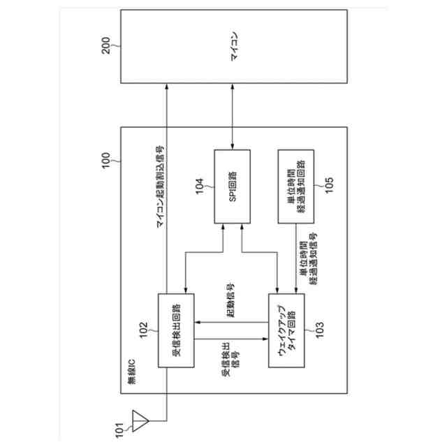無線IC(Integrated Circuit)には、消費電力を低減するためにウェイクアップタイマ回路を搭載しているものがある(例えば、特許文献1を参照)。このウェイクアップタイマ回路は、スリープ状態にあるマイクロコンピュータ(以下、「マイコン」という。)に対し割込信号を出力し、間欠的に受信電波の有無を確認することで消費電力の低減を図る回路である。停止状態にある無線ICは、ウェイクアップタイマ回路に設定した時間になると、送受信可能な状態となり、事前に設定された処理を実施すると再び停止状態に入る。ウェイクアップ後に受信可能状態になるように予め設定しておけば、ウェイクアップ後に電波を受信可能な状態となり、受信電波が存在するとマイコンへ割り込み通知を行う。