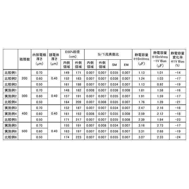 一般に、誘電体層において、グレイン径が大きいほど誘電率が高くなり、誘電率が高いほどセラミック電子部品全体の静電容量を高くすることができる。しかしながら、高誘電率の誘電体は、低電圧かつ高周波数の領域では、低誘電率の誘電体に静電容量を逆転されることがある。