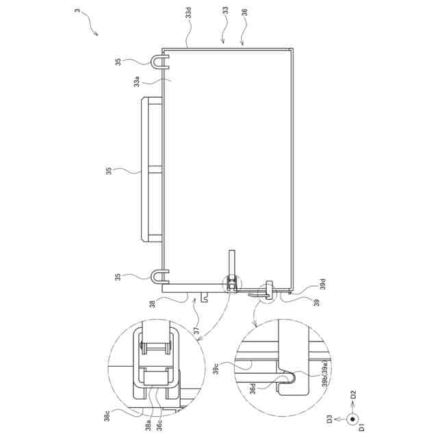 また、以下の説明において、第1方向D1は、前後方向(「第1横方向」ともいう)D1といい、第1方向D1のうち、図における矢印方向を前方向といい、図における矢印方向と反対方向を後方向という。また、第2方向D2は、左右方向(「第2横方向」ともいう)D2といい、第2方向D2のうち、図における矢印方向を左方向といい、図における矢印方向と反対方向を右方向という。