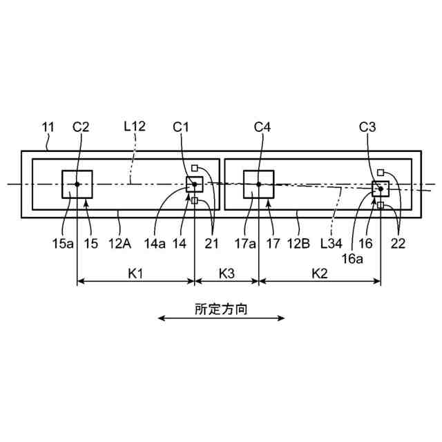 前記主基板に積層され、前記所定方向において互いに隣接して並ぶ第1素子基板及び第2素子基板をさらに備え、