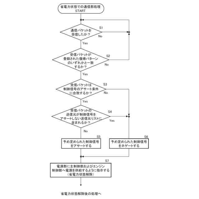 この開示の実施形態において、省電力状態で通信部が実行する省電力状態の解除に係る処理の例を示すフローチャートである。