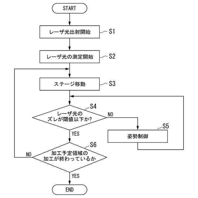 <4>本発明の態様4は、態様2または態様3のレーザ加工装置において、前記ズレのうち前記ステージの位置由来のズレを検出し、前記位置由来のズレに基づいて、前記姿勢調整機構を動作させてもよい。