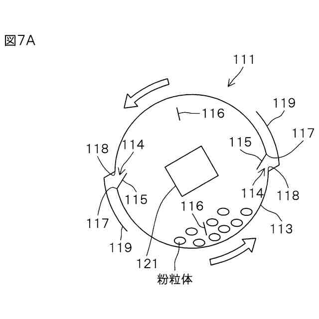 従来、乾燥処理に用いられる装置には、熱風加熱乾燥機および減圧伝熱乾燥機などがある。熱風加熱乾燥機では、ヒータにより高温の熱風が生成されて、その熱風が粉粒体を収容する容器内に供給され、粉粒体の水分が粉粒体を通過する熱風により奪われる。減圧伝熱乾燥機では、粉粒体を収容する容器の壁面がヒータにより加熱される。粉粒体を収容した容器内が減圧されつつ、粉粒体が容器の壁面からの伝熱により加熱され、粉粒体から水分が蒸発する。