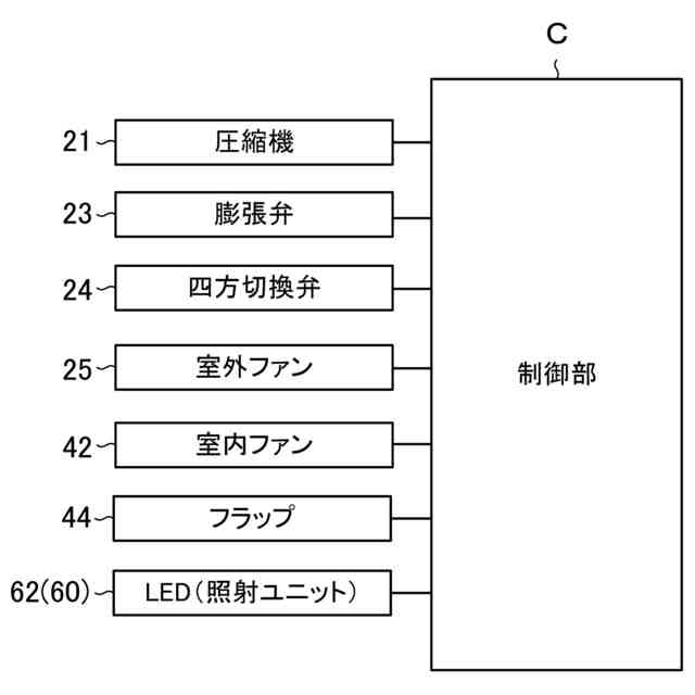 特許文献1は、紫外線を照射するLEDを有する空気調和装置を開示する。LEDは、ケーシング内の空気流路に配置される。LEDは、空気流路に向かって紫外線を照射する。この紫外線により、空気流路を流れる空気中の細菌やウィルスが不活化される。
