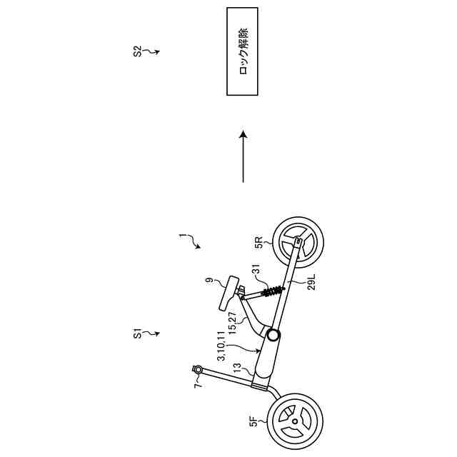 図2は、実施形態の車両の折り畳み手順の一部を示す例示的かつ模式的な図である。