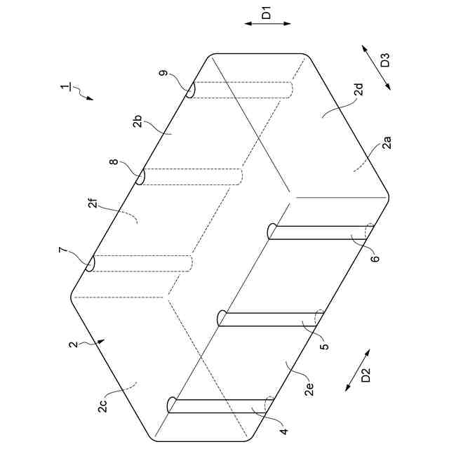 (5)上記(1)~(4)のいずれかひとつの電子部品において、端子導体のテーパー面は、対向方向から見て、湾曲形状を呈していてもよい。この構成では、端子導体の全周がテーパー面となるため、アンカー効果をより効果的に得ることができる。したがって、電子部品では、素体と端子電極との密着性をより一層高めることができる。