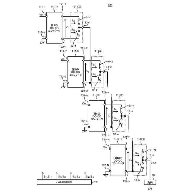 前記N個のDC-DCコンバータのうちの第NのDC-DCコンバータのパルス出力端子は、負荷に接続され、