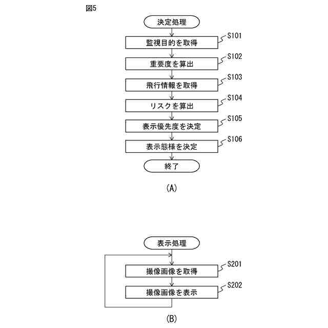 近年、駅、商業施設、発電所等の監視対象物件の周囲を自律して飛行し、監視対象物件を撮像した画像を監視員が利用する画像表示装置に送信する飛行ロボットが開発されている。画像表示装置は、監視員が監視対象物件を効率良く監視できるように、複数の飛行ロボットのそれぞれが撮像した複数の画像を表示する。