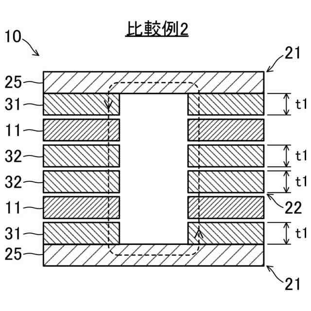 前記第1磁石(31)の厚みt1、前記第2磁石(32)の厚みt2が、t1<t2<2×t1という条件を満たす