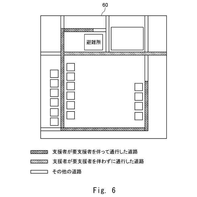 支援者が要支援者と同伴しているか否かを示す情報と、情報に関連付けられた位置情報とを用いて、支援者が要支援者を伴わずに通行した道路である要支援者非同伴道路と、支援者が要支援者を伴って通行した道路である要支援者同伴道路とを区別して表示する地図情報を生成し、
