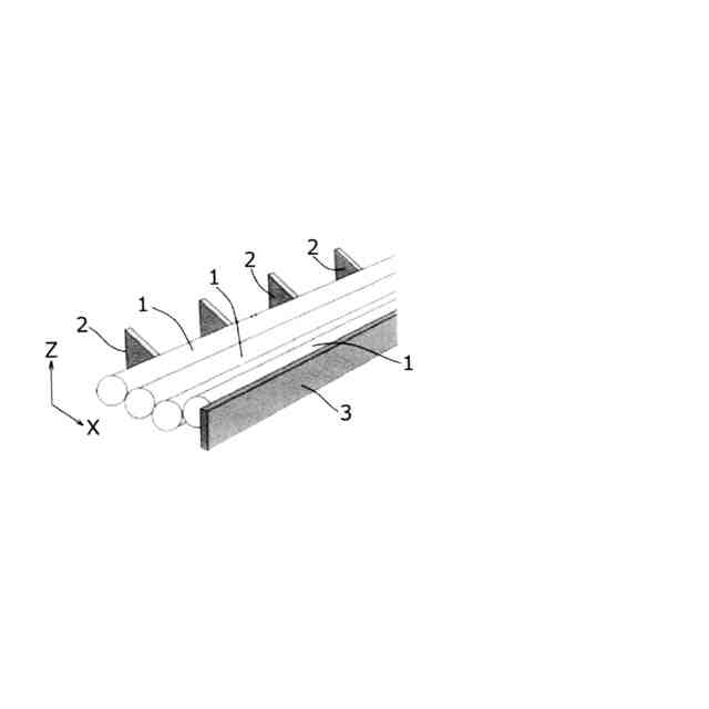 載置台上等に整列させられた丸棒体の計測状態を示す概略横断面図である。