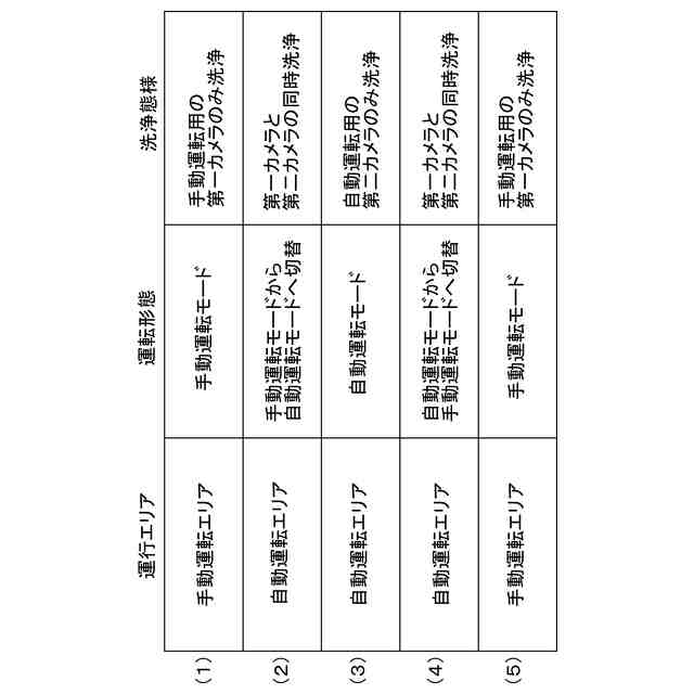 本発明の一態様によれば、手動運転モードと自動運転モードとの切替え時に適切に第一カメラ及び第二カメラを洗浄することができるので、モード切替え時にカメラの汚れで問題が生じることを抑制できる。