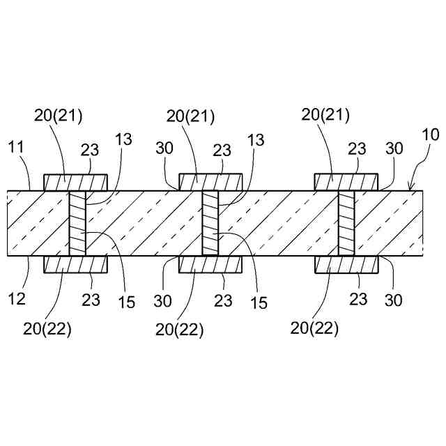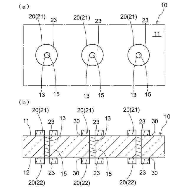 特許文献1ないし特許文献3の記載、開示内容は、基板内の不具合を解消できる。ただし、Cuペーストの場合、抵抗値が相対的に高くCuは酸化されやすい。このため、材質の変更が検討されている。また、Cuめっきの工程において、基板の表裏面に対してもめっきされてしまうため、研磨で除去する工程が追加で必要である。